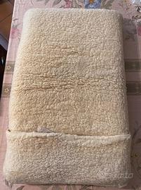 Vendo visto e piaciuto Copertura marca New IMS Life in vello di pura lana vergine merinos 100% naturale e certificato con cuscino. La copertura NON va assolutamente lavata, ma tenuta ALL’ARIA APERTA. Con il tempo il vello di lana si è un pò ingiallito e come tutti i tessuti tenuti nell’armadio presenta da un lato una velatura delle classiche macchie marroni. Misure: 68x42x8 cm