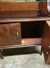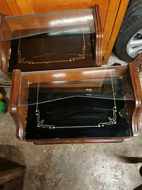 Copia di comodini in noce e acero con mensola in vetro Anni 50