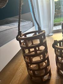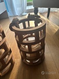 Bellissima coppia di lanterne in legno H 45 H 30