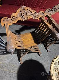 Copia sedie antiche in legno pieghevole più tavolino orientale