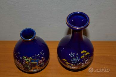 Elegante coppia di vasi in porcellana giapponese, con finiture dorate sul bordo.