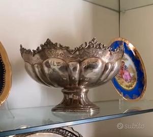 Coppa argento casellata a mano, battuta a mano argento 800 Antiquariato