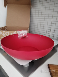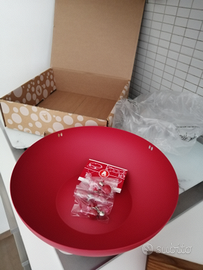 Alessi. Centrotavola coppa in acciaio rivestito di resina epossidica rossa. Oggetto nuovo inscatolato con tutti i pezzi ancora nelle bustine sigillate. Pezzo di altissima qualità Alessi.