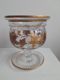 Coppa con coperchio e decori in rilievo di di fogli e grappoli d'uva