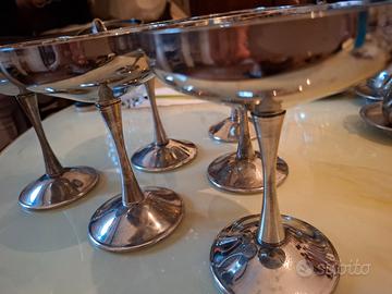 Servizio da sei coppe da champagne in silver plate, ottime condizioni. Eventualmente altre 6 coppe da lucidare, totale 12 coppe euro 200.