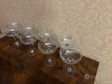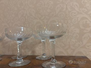 8 coppe champagne in vetro soffiato con tagli a lente.