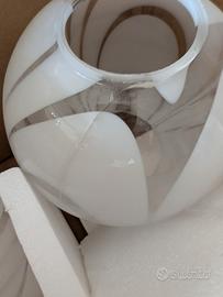 I globi , infatti, sono in vetro opalino soffiato con rigature trasparenti, probabilmente fatti a mano. Il vetro è spesso e di buona qualità.