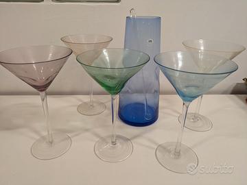 10 coppe a V e caraffa da cocktail in vetro di 'ivat', mai usate ma senza scatola