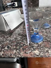 Set composto da 12 coppe per gelato macedonia dessert in vetro diametro 15cm e altezza 12 con base azzurra in vetro