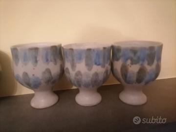 6 coppe in ceramica grezza, dipinte a mano e cotte in forno. Nuove, mai usate. Colori delicati e design essenziale
