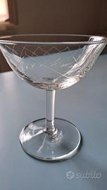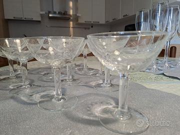 Eleganti coppe in cristallo, finemente lavorate. Originali regalo di nozze anni '60, poi tenute in vetrina. Ideali per apparecchiare una tavola per le feste, utilizzabili per aperitivi, spumanti o anche creme al cucchiaio. Sono 11, usate pochissimo.