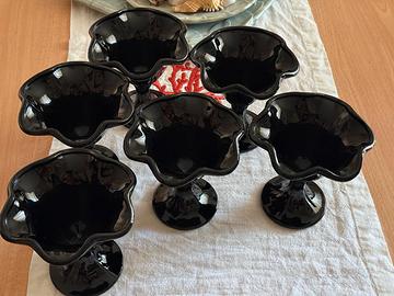 Sono 6 coppe di ceramica nere lucide, vintage, per servire gelato o macedonia proprio come in gelateria. Nuove mai usate.