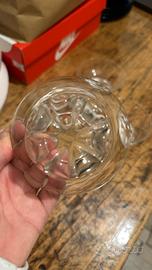 5 coppette in cristallo + una in vetro. Una in cristallo ha una piccola scheggiatura come si vede in foto