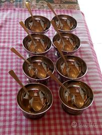 N. 8 Coppette per gelato in acciacio inox e n. 8 cucchiaini da gelato