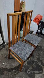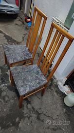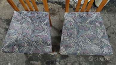 Vendo causa imminente trasloco coppia di 2 sedie ideali per cucina, salotto, soggiorno, struttura in pregiato legno frassino e seduta rivestita in tela imbottita fantasia colore grigio con sfumature bianco e rosa, dimensioni altezza 108 cm, profondità 42 cm, altezza seduta 45 cm, larghezza (avanti) 45 cm e (dietro) 35 cm, in buone condizioni generali.