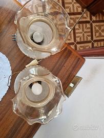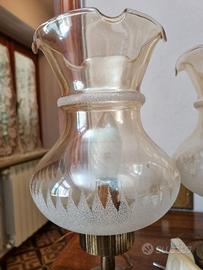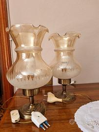 Coppia abat jour da comodino con paralume in vetro lavorato e satinato nella parte bassa