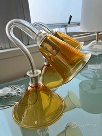Coppia di lampade da comodino/abat-jour La Murrina, modello Sinfonia, realizzate artigianalmente in vetro di Murano color topazio (ambra chiaro) soffiato a mano. Il design è caratterizzato da: