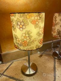 Base in acciaio cromato con logo, plafoniera in tessuto color crema con fiori Thun e cavo in gomma trasparente. Base diametro 10 cm, plafoniera diametro 15 cm, altezza 34 cm. Perfettamente funzionanti e in ottimo stato.
