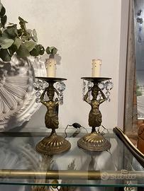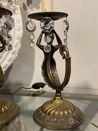 Coppia abat-jour vintage in ottone e gocce di vetro. Tutti pezzi originali e perfettamente funzionanti. Prezzo per la coppia.