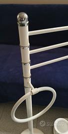 Coppia accessori bagno da terra in metallo smaltati bianchi con tazza in ceramica e finiture in cromo. Grande 98 cm Piccolo 76 cm