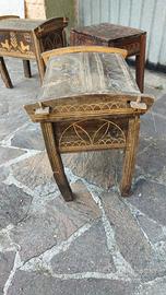 Il lotto è costituito da due archette gemelle e uno sgabello contenitore, le arche hanno decorazioni simili ma diverse, una ha una gamba da rincollare. le misure delle arche sono 50x37h50.