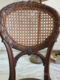 Coppia di antiche sedie in legno e paglia di vienna. Epoca primi 900 Non presentano segni di tarli. Su una è da rifare la seduta in paglia di vienna. Per il resto la conservazione è buonissima