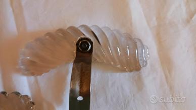 coppia di appendiabiti in vetro murano lavorato anni 40/ 50 larghezza 15 cm ,altezza 14 cm , in perfetto stato segni conformi all età