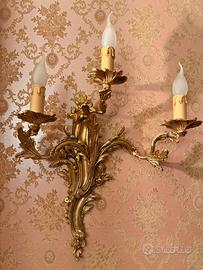 Questa è un'applique da parete a tre luci, un raffinato elemento d'arredo realizzato in stile classico, bronzo dorato. Prezzo 250 coppia