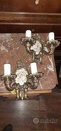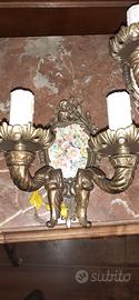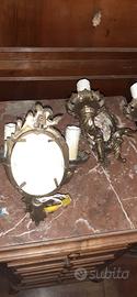 coppia applique in Bronzo con specchietto in ceramica. alt 19 larg 19