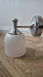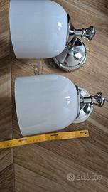 Vendo set di 2 applique da parete dallo stile elegante, caratterizzate da un bellissimo paralume in vetro bianco latte lavorato artigianalmente. La base è in metallo con finitura cromata/argento di alta qualità , progettata per resistere alla ruggine e alla corrosione. Sono lampade molto versatili: perfette per lo specchio del bagno, come luci da lettura ai lati del letto o per dare carattere a un corridoio o alla cucina. ✨ Dettagli del prodotto: Materiale Pregiato: Paralume in vetro soffiato a mano da artigiani esperti (luce morbida e accogliente). Dimensioni: Diametro paralume 13 cm; diametro base a muro circa 12 cm (4.7"). Attacco Lampadina: Compatibili con lampadine E27 (LED, Edison o CFL) fino a 40W. Finitura: Metallo cromato anti-sbiadimento. Stato: Nuove, mai montate. Ricevute e aperte solo per controllo. Nota: Le lampadine sono incluse.