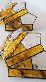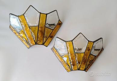 Coppia di applique vintage in ferro battuto dorato e vetro ambrato martellato e trasparente di Longobard, Italia, 1970. Concorrente di Poliarte negli anni '70.