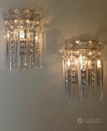 coppia di applique vintage rispolverate, struttura in ottone dorato con cristalli