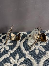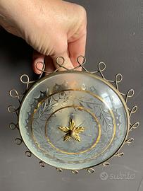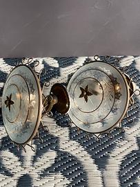 Coppia applique da muro anni ‘50. Usate sopra ai comodini. Ottone e vetro, , molato e decorato in foglia d’oro.