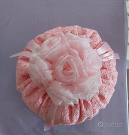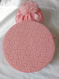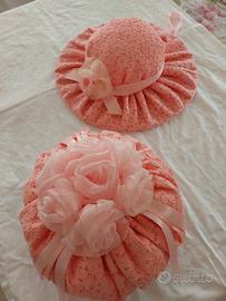 SUPER BELLISSIMA coppia forma cappello ( diametro 32 cm ) e bon bon profumato in rosa tutto fatto a mano.