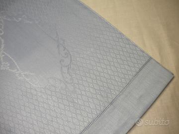 Coppia di asciugamani in fiandra di lino (100%), colore celeste, da decorazione.