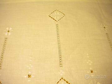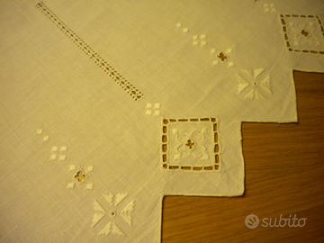 Elegante disegno astratto su entrambi. Finitura con smerlatura decorativa.
