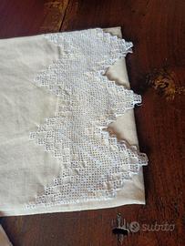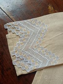 Coppia di asciugamani di lino con asciugamano da bidet Bordatura uncinetto Beige e bianco