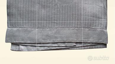 2 Asciugamani in lino colore verde chiaro con ovale ricamato a mano in bianco. Misura 64 x 103 cm. Anni ’70 Nuovi. Made in Italy
