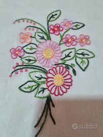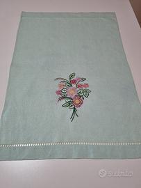 coppia asciugamano in puro lino realizzato interamente a mano ricamate e orlo sfilato da entrambi i lati. Nuovissime appena finite di ricamare. Misurano cm