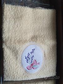 Coppia salviette bagno ricamate Mai usate. Color giallo sena cartellino No china