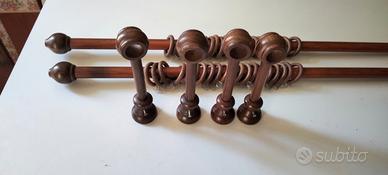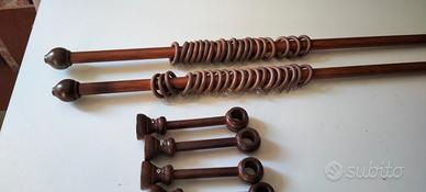 Coppia bastoni per tende in legno colore noce in ottime condizioni lunghezza cm 185 diametro mm 22 completi di 20 anelli e gancetti ognuno piu' supporti di fissaggio a parete o a soffitto --consegna solo a mano dopo aver preso visione dell'oggetto