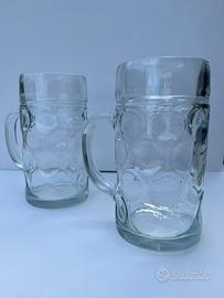 Set di due boccali da birra in vetro, ciascuno con una capacità di 1 litro. Perfetti per gustare la tua birra preferita in compagnia.