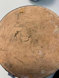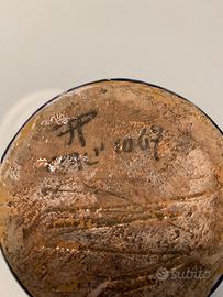 Coppia di brocche in ceramica, colori bianco, blu, giallo. Buono lo stato. Misure della brocca grande: altezza cm 22,bocca cm 13. Misure della brocca piccola: altezza cm 13, bocca cm 10. Solo consegna a mano a Verona
