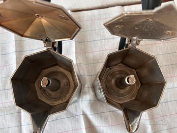 Le caffettiere sono in condizioni vintage/usate, con la tipica patina interna che, come sanno i veri intenditori, è il segreto per un caffè perfetto.