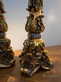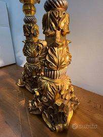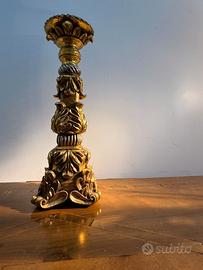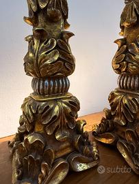 Vendo candelabri color oro, in legno scolpito, intagliato e dorato. Prezzo per la coppia 140euro