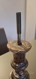 Vendo coppia di candelabri in legno del 1800 appartenuti ad una chiesa poi sconsacrata. I candelabri sono stato trasformati in lampade da tavolo. Alti circa 60 cm. Il restauro per portarli a lampade non ha modificato il candelabro mantenendone il suo valore. Si posso riportare all'originale. Non spedisco e si consegno direttamente nel raggio di 200km gratuitamente.