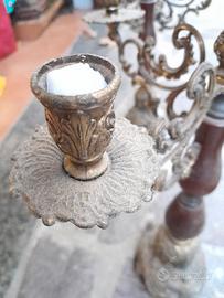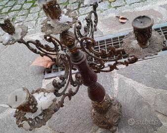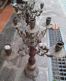 coppia candelabri finemente lavorati in ottone e legno in buono stato 60 €cadauno se presi in coppia 100€