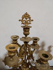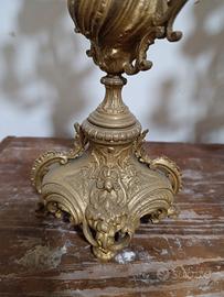 ANTICA COPPIA CANDELIERE CANDELABRO BAROCCO PORTACANDELE OTTONE DORATO EPOCA 900. IN BUONE CONDIZIONI.