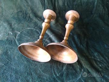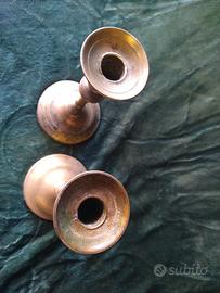 Coppia di candelieri in ottone. In buone condizioni. Diametro fondo 10 come altezza 20 cm.