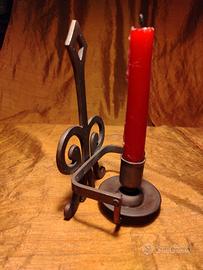 Particolare coppia di candelieri in ottone. Il meccanismo consente di posizionarli in orizzontale o verticale come quelli usati nelle vecchie navi. Altezza 18 cm. Peso totale 800 grammi.